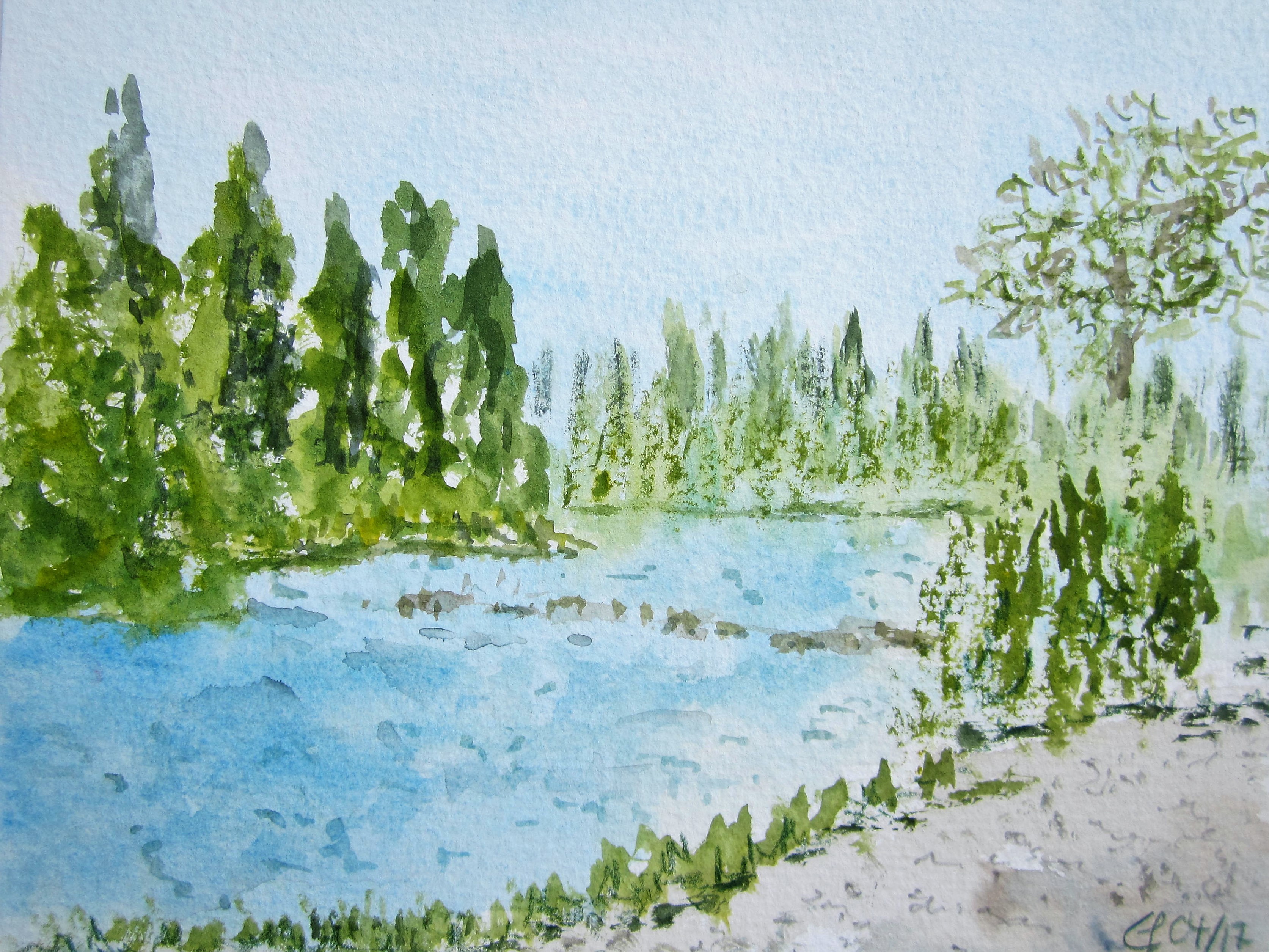 am Radweg des Mincio Posted 17. Mai 2017 by Eva Flueck Am Radwegs des Mincio, Aquarell, 2017 mit Passepartout und Rahmen, 30 x 40 cm