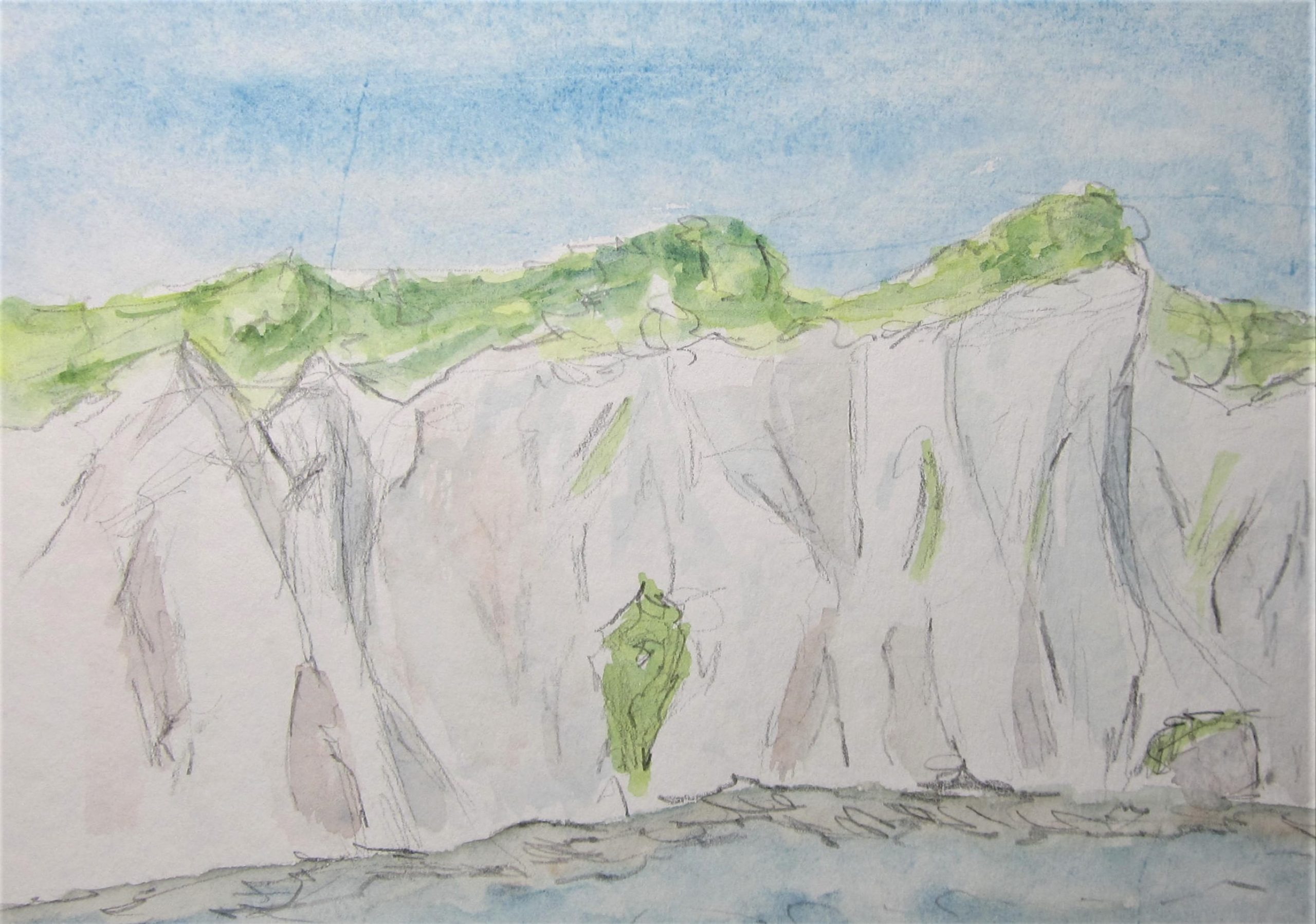 Rügen Kreidefelsen, 2008 Posted 10. Juni 2020 by Eva Flueck Rügen Kreidefelsen, 2008 Aquarell, mit Rahmen und Passepartout 30 x 40 cm