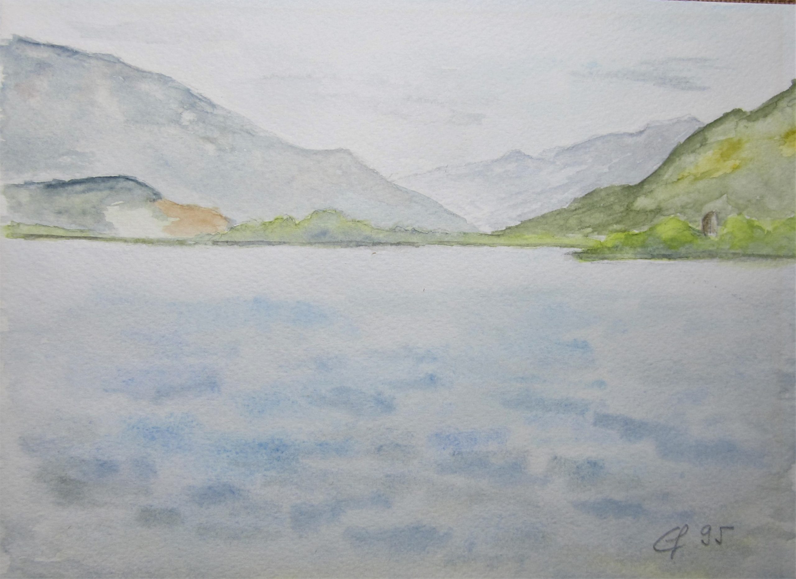 am oberen Zürichsee, 1995 Posted 10. Juni 2020 by Eva Flueck am oberen Zürichsee, 1995 Aquarell, mit Passepartout und Rahmen 30 x 40 cm