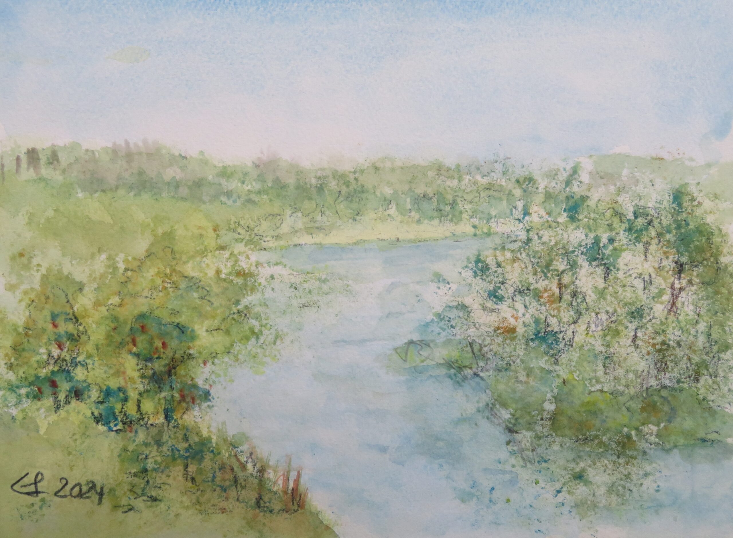 Tiroler Achen, 2024, Aquarell Posted 10. Mai 2024 by Eva Flueck Tiroler Achen, 2024 Aquarell mit Passepartout und Rahmen 40 x 50 cm