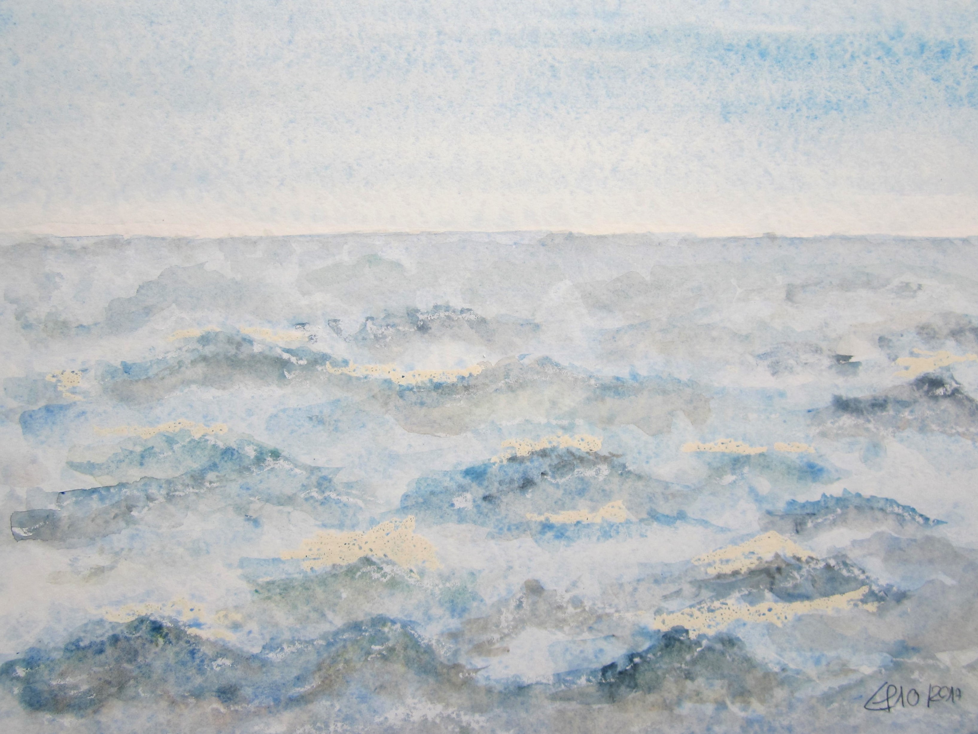 stürmisches Meer Posted 28. Oktober 2017 by Eva Flueck Stürmisches Meer im Herbst 10.2017 Aquarell mit Passepartout und Rahmen 50 x 70 cm