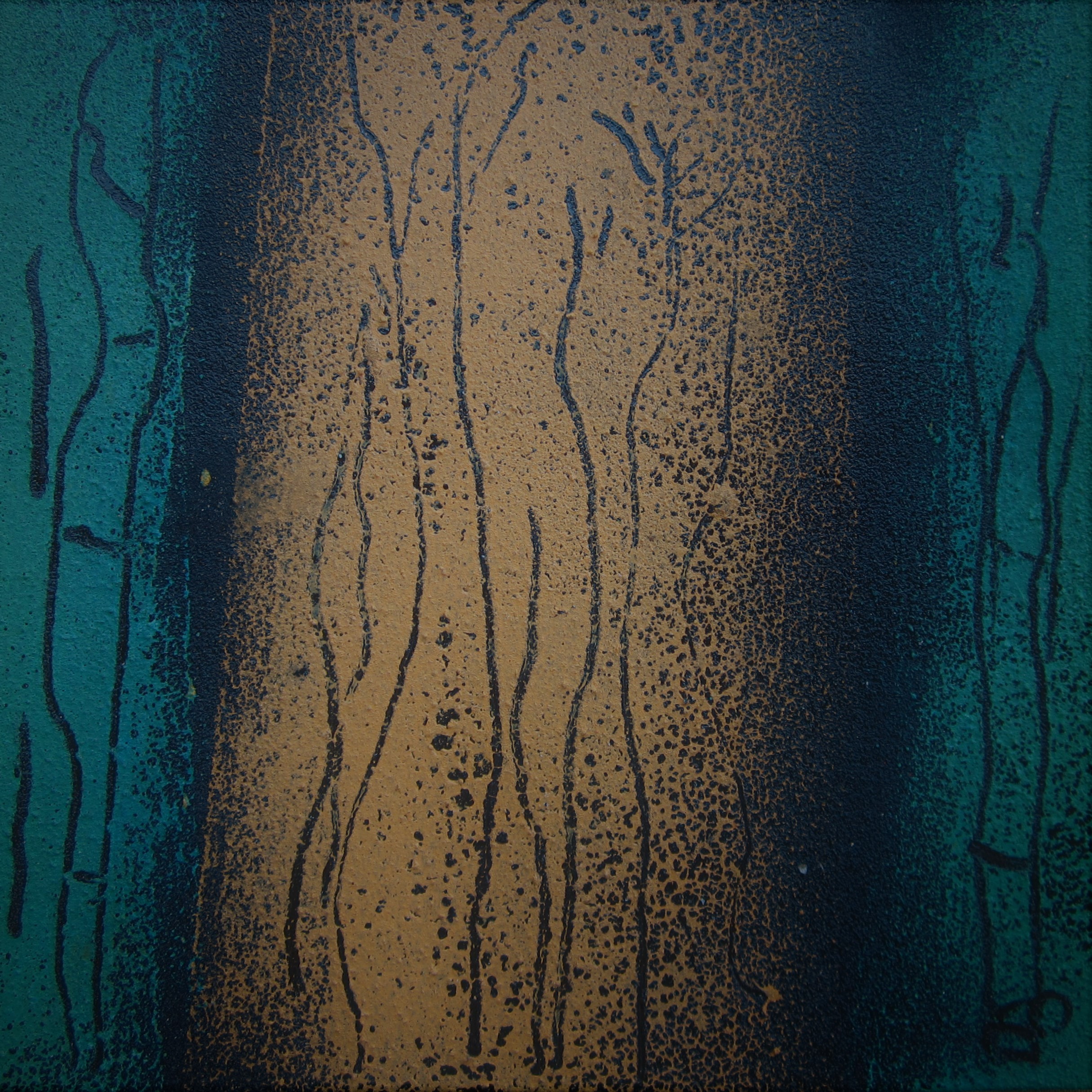 Teer und Acryl, Bambus Posted 27. April 2018 by Eva Flueck Teer mit Acryl, Bambus, 2018 auf Karton, 15 x 15 cm
