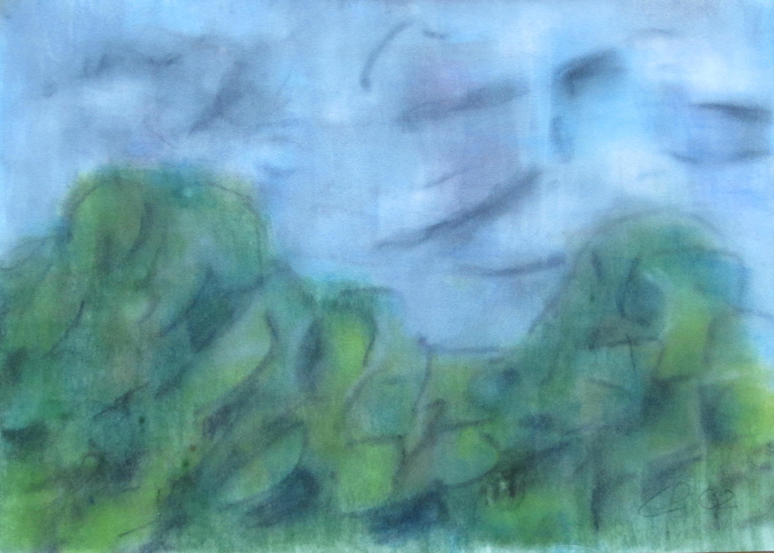 stürmischer Regentag Posted 16. Mai 2015 by Eva Flueck stürmischer Regentag, 2002, mit Passepartout und Rahmen, 40 x 50 cm
